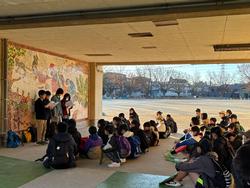 浅草では、「ASAKUSAチャレンジ」として普段英語の時間に学習したことをつかって、外国から観光に来ている方へインタビュー活動を行いました。