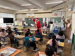貝の花小のよい子たちに、サンタさんがプレゼントのお楽しみデザートを届けてくれました。