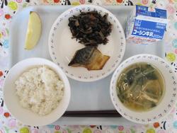 ひじきとれんこんのいりに りんご ぎゅうにゅう