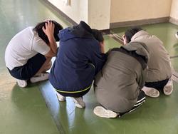 予告をせずに行ったため、はじめはびっくりした様子も見られましたが、その後はおちついて一時避難をすることができました。