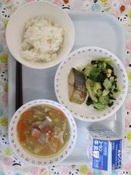 ごはん さわらのさいきょうやき わかめサラダ さつまじる ぎゅうにゅう |