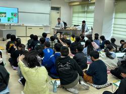子供たちは、1分間に東京ドーム2.4個分の森林が消失していると知り、とても驚いていました。