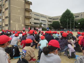| 雨も予想されましたが、なんとか天気のよい中で出発の会を実施しました。今年度の校外学習トップバッターは4年生。それもあり期待に胸を膨らませています。成田空港に関する事前学習もしっかりしていたのもそのことを後押ししてくれました。昨日のてるてる坊主の効果もうれしいです。3つの約束を達成できるようにと元気いっぱい出発の会ができました。 |