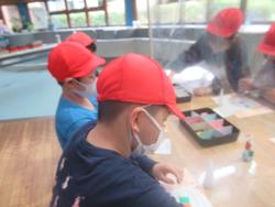 | アスレチックで体を動かした後は、お待ちかねの昼食タイムです。色とりどりのお弁当を見ていると、おうちの方は、いったい何時に起きたのだろうと感謝の気持ちでいっぱいになります。子どもたちは満面の笑み。校外学習の楽しみと言えば、やはりこの時間ですね。 |