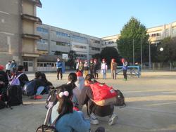 | 目の覚めるような青空の下、子どもたちが元気いっぱい登校してきました。素敵な一日を暗示するかのような素晴らしい天気でした。 |