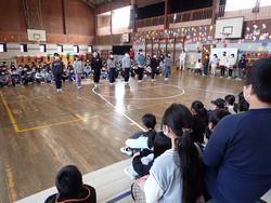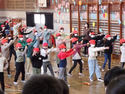 | 4年生は、卒業する6年生へ向けた歌とダンスを披露しました。手話や英語での歌唱を駆使するなど、これまで学んできたことを存分に入れた発表でした。懐かしい曲でのダンスは6年生の心をつかんでいました。 | |