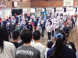 | 6年生を送る会を実施しました。2学年ずつではありましたが、数年ぶりに対面式で実施しました。各学年が、目の前の6年生に向けて、心を込めて発表をし、6年生の卒業をお祝いしました。きれいに飾り付けた体育館に6年生をお招きするアーチが鮮やかです。 |