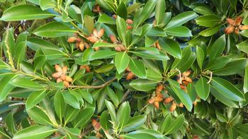 校庭の木には、たくさんのどんぐりがなっています。