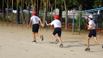 柿小の陸上部の子ども達は一生懸命練習に取り組んでいます。
