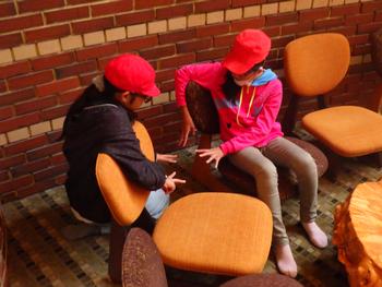 ホテルのロビーでゆったりと過ごす子もいました。