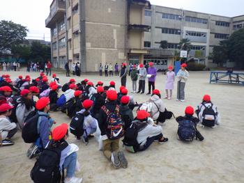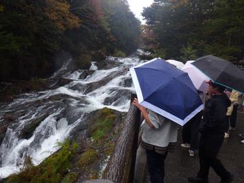 退所式です。ホテルの方の話をしっかり聴き、いよいよ竜頭の滝に向けて出発です。