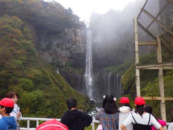 竜頭の滝の後は、華厳の滝です。エレベーターで100mほど下り、通路を通っていくと、