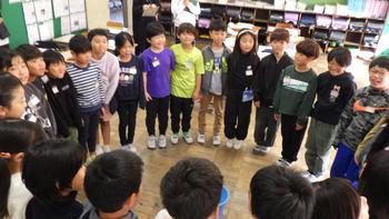 かごに球を入れる時、どんなふうに並んだらみんな公平にゲームができるかを学習しました。