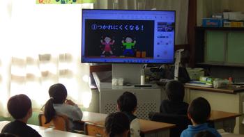 柿ノ木台小では、集会は、体育館に集まるのではなく、オンラインで行っています。