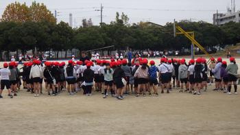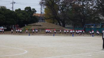 前の学年が走っているときに準備体操をしたり、応援をしたりしています。