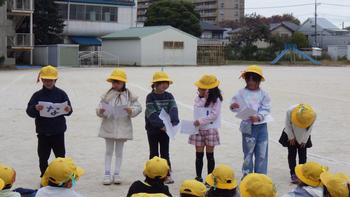 プレイルームで出発式をしました。校外学習のめあては「なかよし」です。