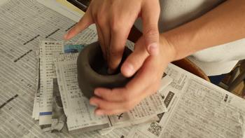 指や手のひらを使って上手にカップの形をつくっていきます。