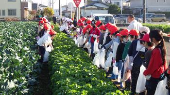 学区の農家さんのご厚意で、毎年3年生が体験させていただいております。
