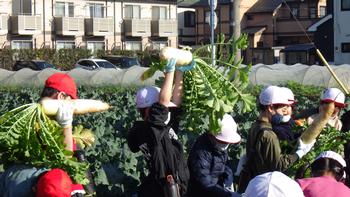 「おでんが食べたいなあ」「大根おろしもできるよ」など、大根を使った料理を考えながら学校に帰ってきました。