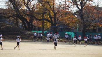 1年と6年、持久走の授業