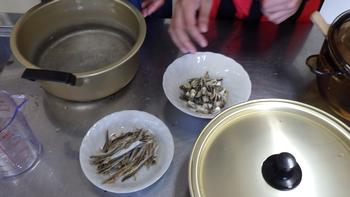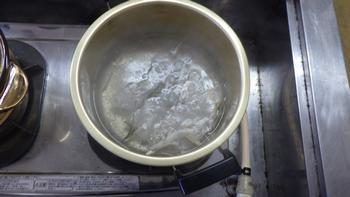 出汁を取りながら、お米の給水をします。その間に・・・