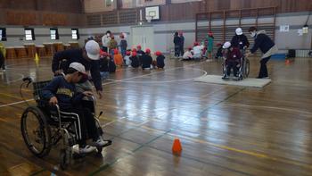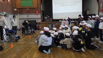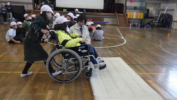 4年生は、社会福祉法人の方々に来ていただき、車椅子に乗るなど、障がい者体験の学習を行いました。