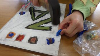 3年、トンカチを上手に使って(図工)