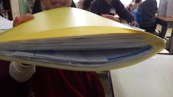 「こんなに頑張ったよ!」と分厚くなったファイルを見せてきたので、写真を撮りました。