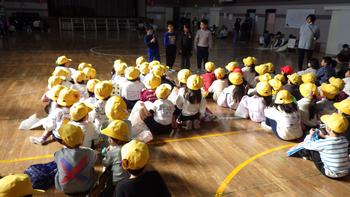 感染症等もあるので、1年生をいっぺんに全員集めるのではなく、前半は1組とそよ風、後半は2・3組にわけて行いました。