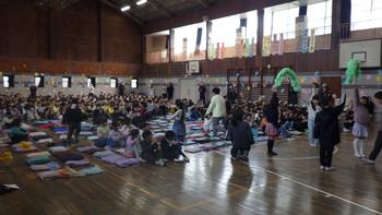 この後、1年生が6年生を連れて体育館に入場してきます。