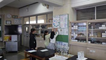 理科委員会は、理科室の整理をしていました。