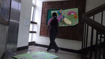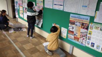 掲示委員会は、古くなった掲示物を新しいものに交換していました。