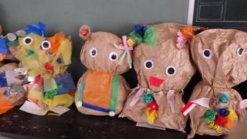 2年生は、図画工作科の授業で「ぎゅうっとしたいお友だち」を作りました。