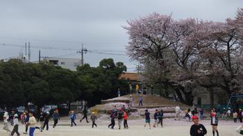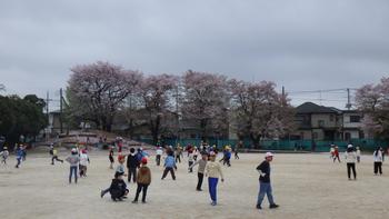 雨が降る前に休み時間になったので、たくさんの子どもたちが校庭に飛び出してきました。