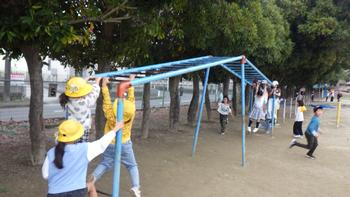 うんていも大人気。手にまめができるくらい頑張っている子もいました。