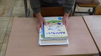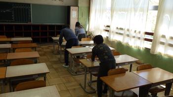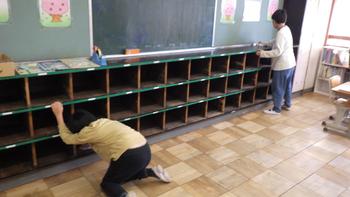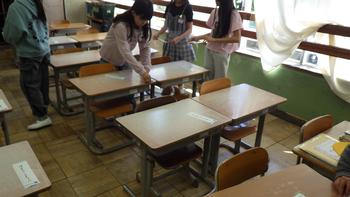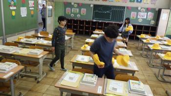 1年生が使う机をきれいに拭いて、