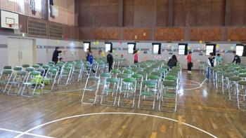保護者の方が座る椅子もしっかり拭いてきれいに並べました。良い感じに仕上がってきましたね。