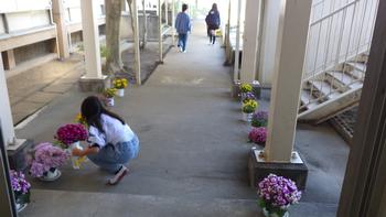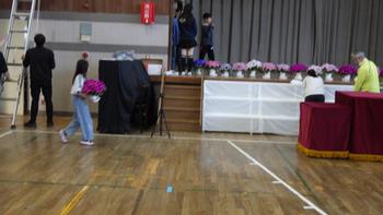 1年生が座る椅子は、2年生の教室から運んできました。壇上に飾る花も運んできれいに並べました。