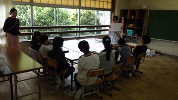 理科委員会は、金魚や亀の水槽の洗い方について説明を受けていました。