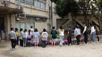 栽培委員会は、水をあげるなど花の世話をしていました。