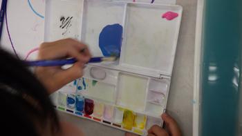 絵の具を濃くしたり、水を足して薄くしたりして、作品を作り上げる予定です。