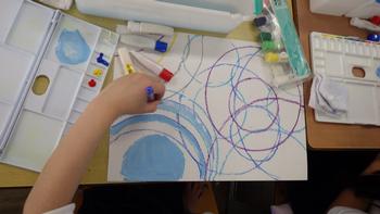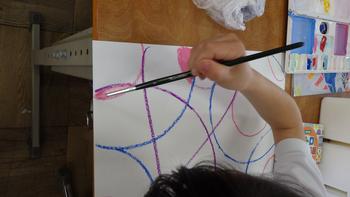 3年生はクレヨンと絵の具を使って作品を作っています。