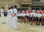 | 千葉ロッテマリーンズの選手によるベースボールチャレンジに4年生が参加しました。体育でも「ベースボール型」の運動に取り組みますが、プロの選手に投げ方等を教わるよい機会となりました。 |