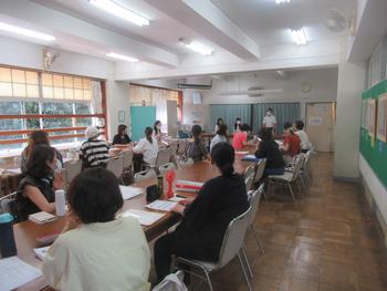 | 校長室前のアゲハのさなぎ。引き出しの中をのぞき込む子どもたちが後を絶ちません。生き物の不思議は子どもたちを強くひきつけるようです。 | 柿小の避難所関係者の顔合わせを行いました。万が一の災害に備えて、忙しい中お集まりいただきました。 |