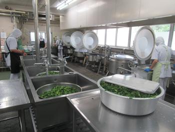 | わけあって朝の給食室に入ることができました。早朝からたくさんの作業をしてくださっています。大量の野菜を切り、だしをとり調理の下準備をしていました。700人分の給食は、サラダ一つとっても大量に作るので、下ごしらえだけでたくさんの時間を要することが一目でわかりました。いつも美味しい給食ありがとうございます。 | |