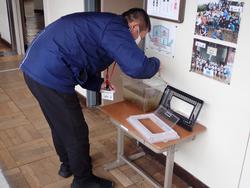 理科委員会の皆さんが、サケのたまごの仕分け作業に取り組んでいました。低学年から順番に希望者にたまごを渡していきます。水は冷たいですが、みんな意欲的に取り組んでいます。すばらしい。 |