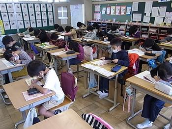3年生、国語の授業の様子です。新出漢字の説明を受けて、それぞれ練習帳に記入することができていました。