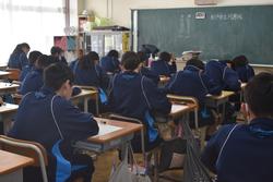 1年生は6校時に英語学力実態調査を実施しました。リスニングやライティングの試験と英語の学習に関するアンケートを行いました。