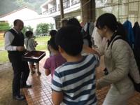 いよいよ鮎が焼けました。全員、テラスに集合。鮎の食べ方を教わって、いざ、頭から、ガブリ。オイシィ〜!お代わりできた子が何人かいました。良かったね。