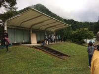 6時15分集合です。10分前に集まり始めているみんなです。えらい。外には全員が、時間を守って集まることができました。実行委員のクイズ、昨日食べた魚は何ですか。ほとんどの人がわかっていましたね。鮎です。